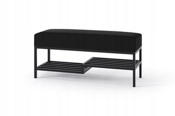 Ławka do przedpokoju 100 cm tapicerowana z półką na buty czarny stalowy stelaż