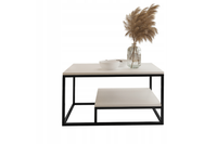 ( ilość produktów: 11 )Stolik VENTO kawowy z półką biały blat czarny stelaż nowoczesny loft 90x60 cm