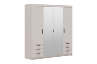 Szafa LIVIO 4-drzwiowa z półkami szuflady lustro beż piaskowy garderoba