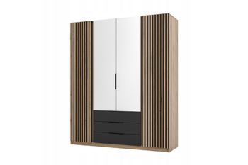 Szafa ARKA 4-drzwiowa 2 lustra lamele czarne szuflady dąb evoke 200 cm