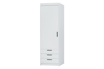 Szafa LIVIO biała 1-drzwiowa z półkami i szufladami drążek garderoba