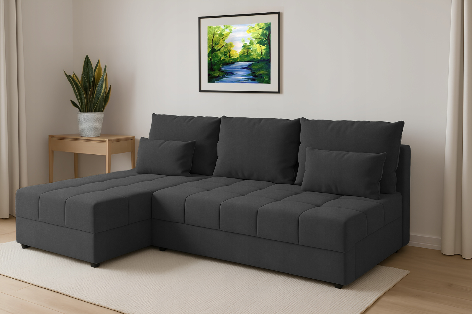 - Tył mebla w takiej samej tkaninie – narożnik wolnostojący
