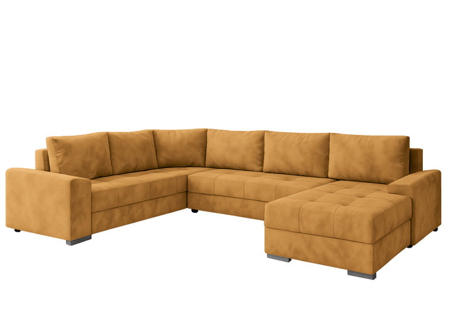Narożnik można w prosty sposób przekształcić w wygodne łóżko. Wystarczy usunąć poduchy i wysunąć siedzisko, aby uzyskać komfortową powierzchnię do spania – idealną zarówno do codziennego wypoczynku, jak i noclegu dla gości.